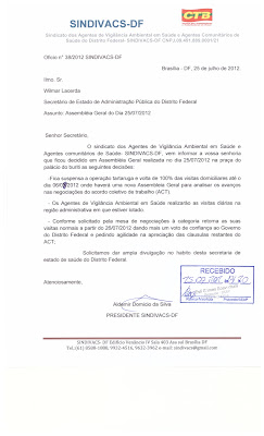 ASSEMBLÉIA GERAL DIA 06/08/2012 NO CLUBE DA SAÚDE